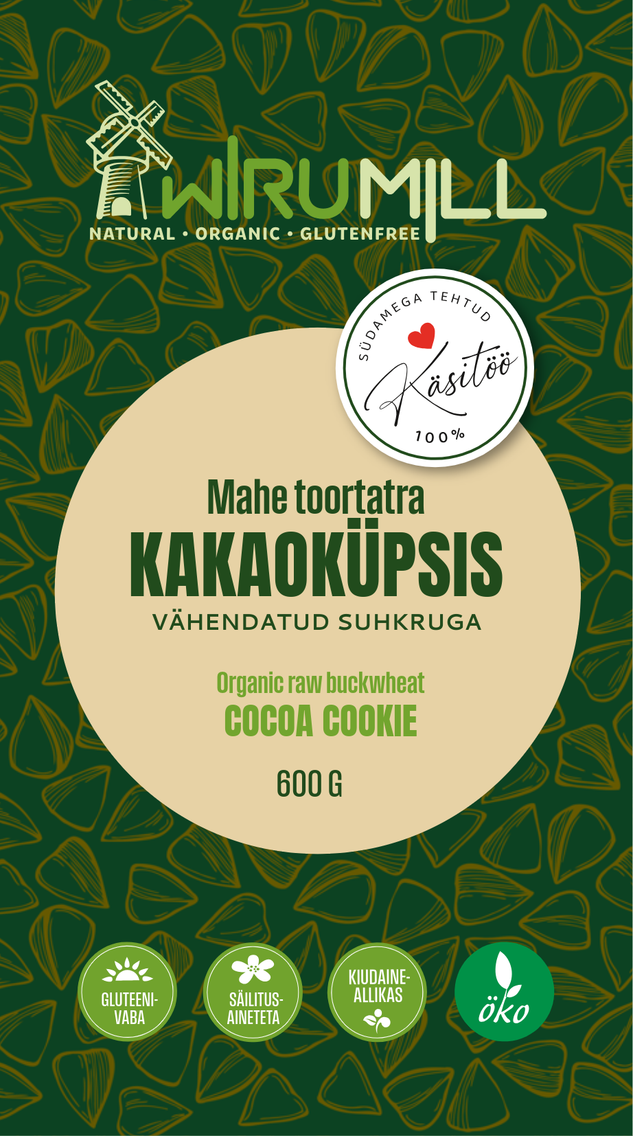 Gluteenivaba. Käsitöö. Säilitusaineteta. Kõrge kiudainesisaldusega. EE-ÖKO-03.