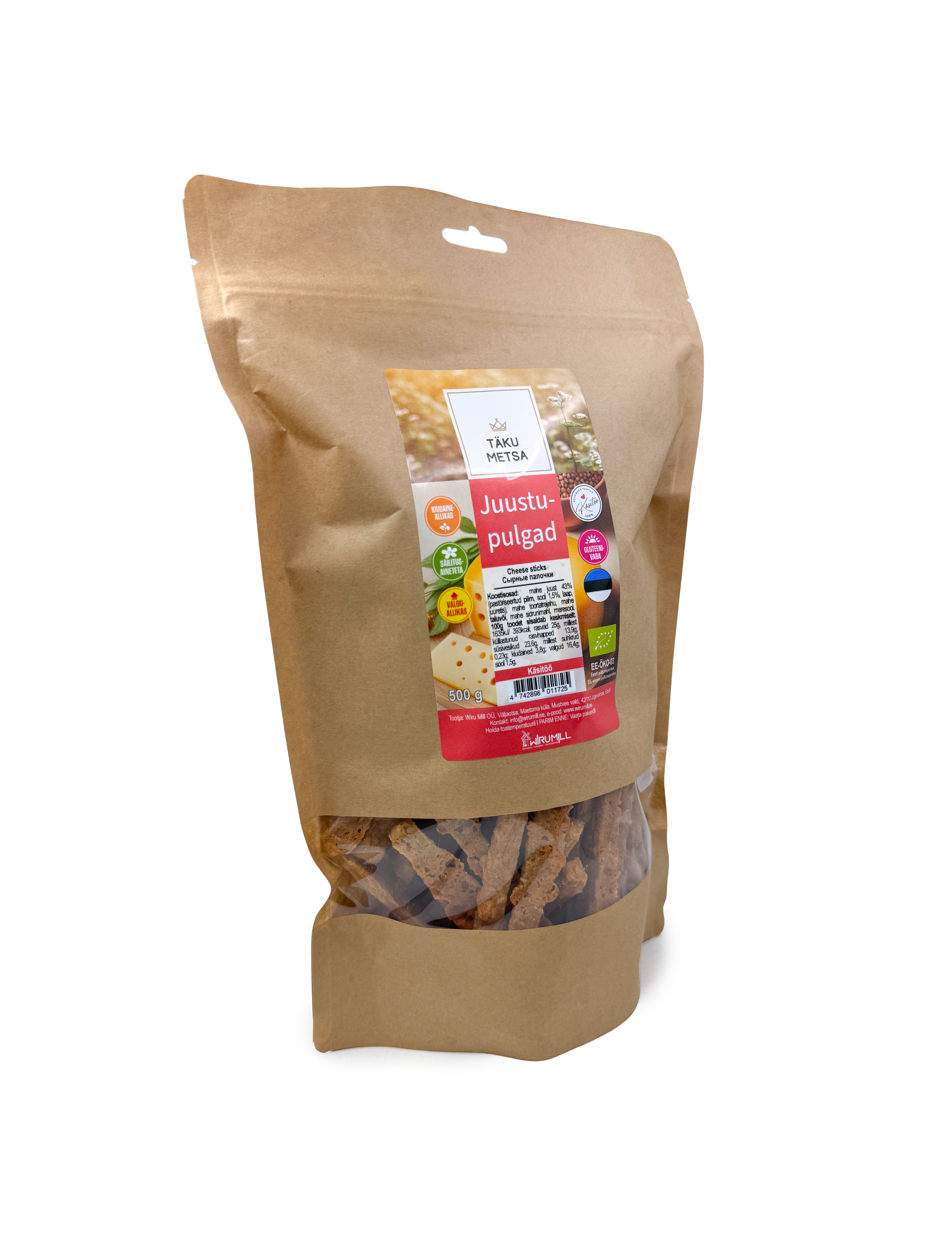 Gluteenivaba ja käsitööna valmistatud maitsev snäkk, mis sisaldab 43% juustu. Eesti mahetoortatrajahust valmistatud krõbedad pulgad pakuvad rikkalikku ja juustust maitseelamust. Ideaalne tervislik vahepala või suupiste teadlikule tarbijale!