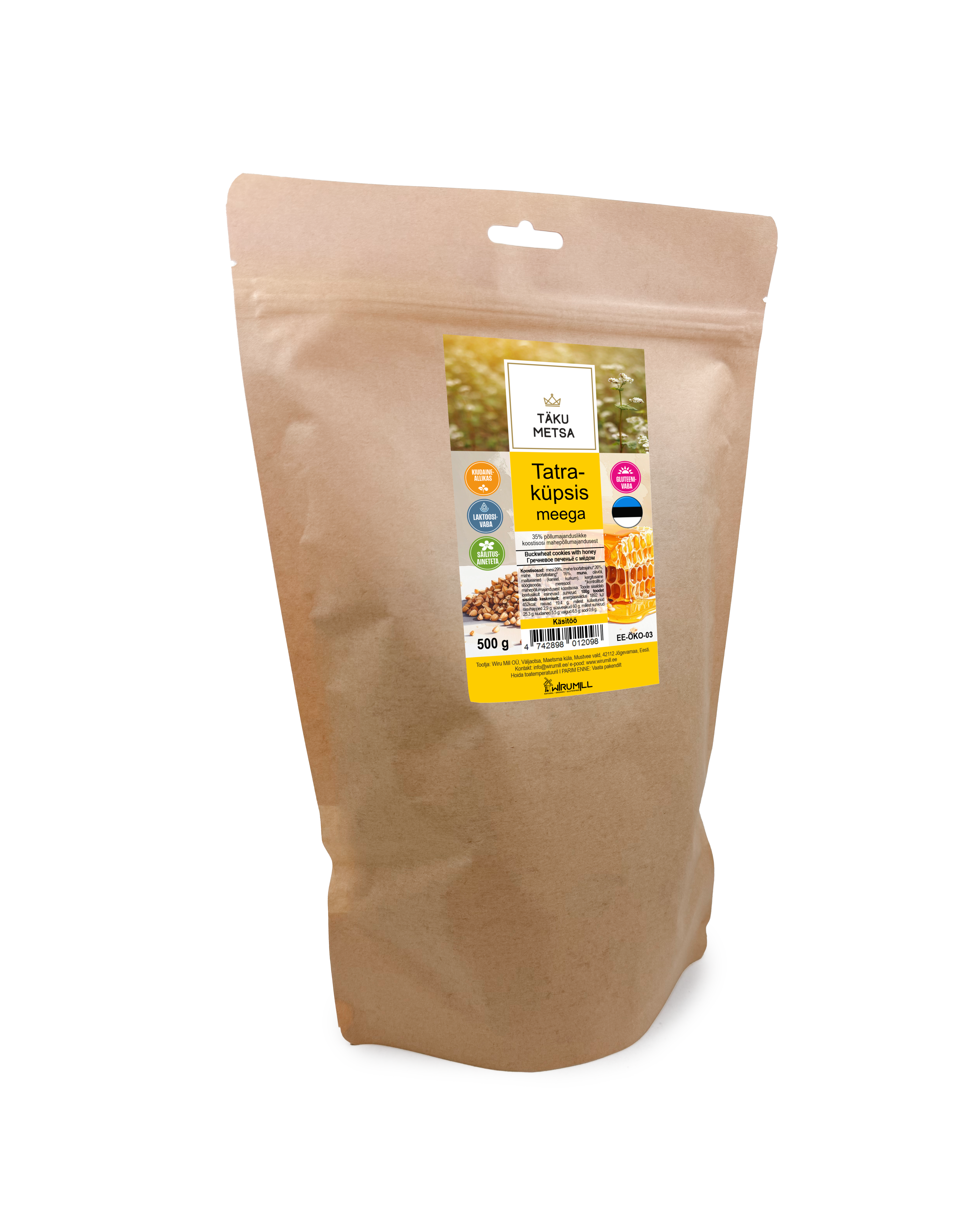 Täkumetsa tootmises on „heegeldatud“ maheda toortatra sisse päevalilleseemned. Gluteenivabad küpsised on tehtud meeallergikute peale mõeldes mahe suhkruga.